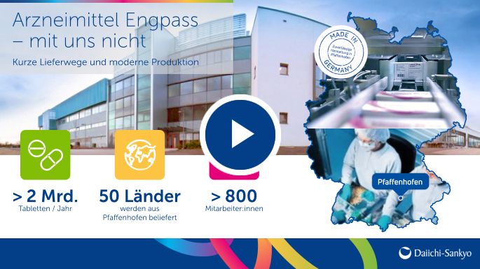 An unserem Standort in Pfaffenhofen werden nicht nur Medikamente hergestellt, sondern auch entwickelt. Die Forschung übernimmt weltweit eine führende Rolle für eine steigende Zahl galenischer Forschungsprojekte. Mit Investitionen von ca. 1 Mrd. EUR werden in den nächsten Jahren neben der Erweiterung von Produktionskapazitäten für kardiovaskuläre Therapien, auch neue Labore, insbesondere für Daiichi Sankyos ADC (Antibody Drug Conjugate), entstehen.